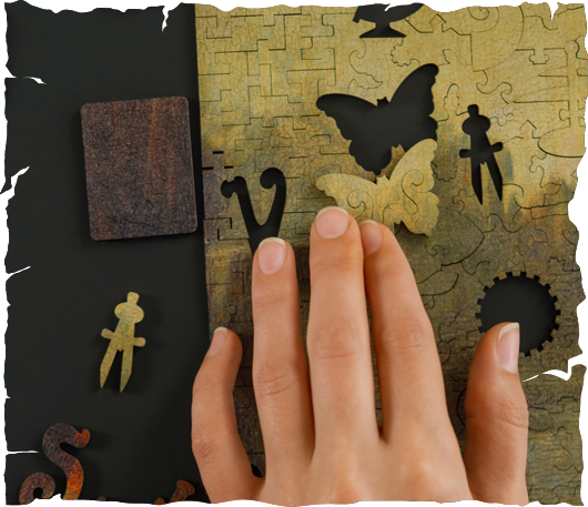 Whimsy pieces will introduce you to the artist’s hobbies and the history of his emergence. More than 10 thematic mini-puzzles are hidden inside the picture: from the Vitruvian Man to Da Vinci’s signature frescoes. You can even put together the name of the picture using lettered pieces!