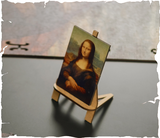 The puzzle has a premium-quality packaging: a lacquered wooden box and a craft paper with Da Vinci’s drafts and sketches. Each box contains a mini-easel with a copy of the painting — your clue for assembling the puzzle.